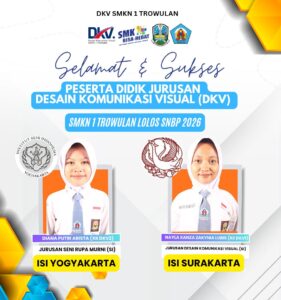 Kabar membanggakan kembali datang dari Jurusan DKV SMKN 1 Trowulan. Pada tahun 2026 ini, siswa-siswi terbaik berhasil lolos melalui jalur SNBP ke kampus-kampus favorit, khususnya di ISI Yogyakarta dan ISI Surakarta.