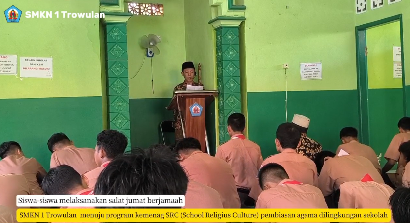 Trowulan โ SMKN 1 Trowulan secara rutin melaksanakan pembiasaan Sholat Jumat bagi seluruh siswa muslim sebagai bagian dari program religius sekolah. Kegiatan ini dilaksanakan setiap hari Jumat dan diikuti oleh guru serta siswa siswi dengan tertib dan penuh kekhusyukan.